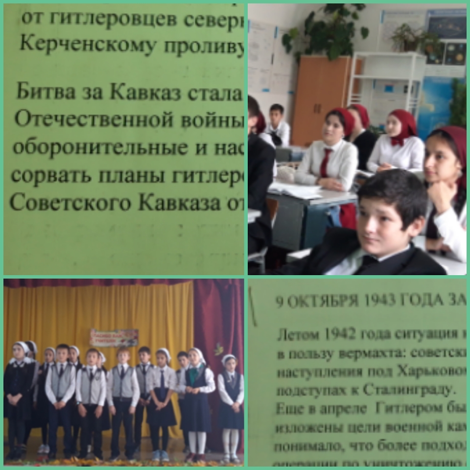 Провели мероприятия, приуроченные очередной годовщине завершения битвы за Кавказ. Цель мероприятий: ознакомить обучающихся с историей Кавказа, расширить кругозор обучающихся.
