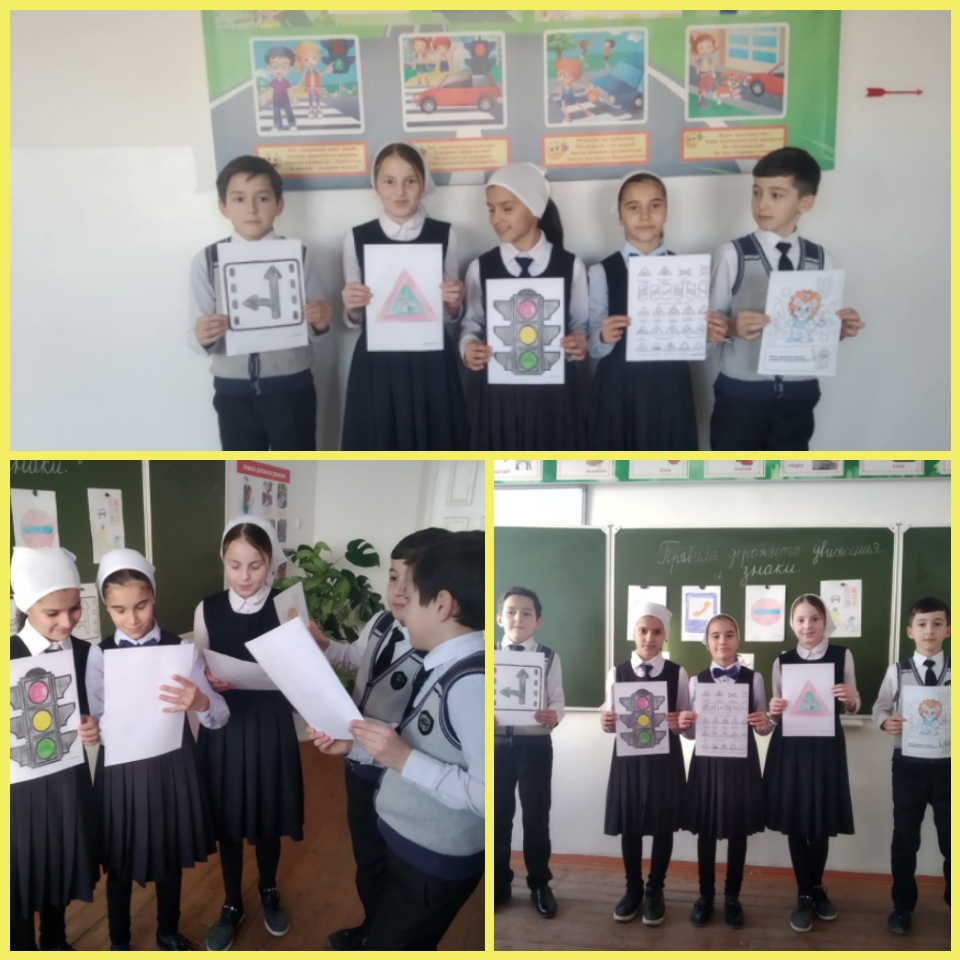 Члены команды "Юные Кадыровцы" провели мероприятие с обучающимися 4 кл., по теме Дорожные знаки.