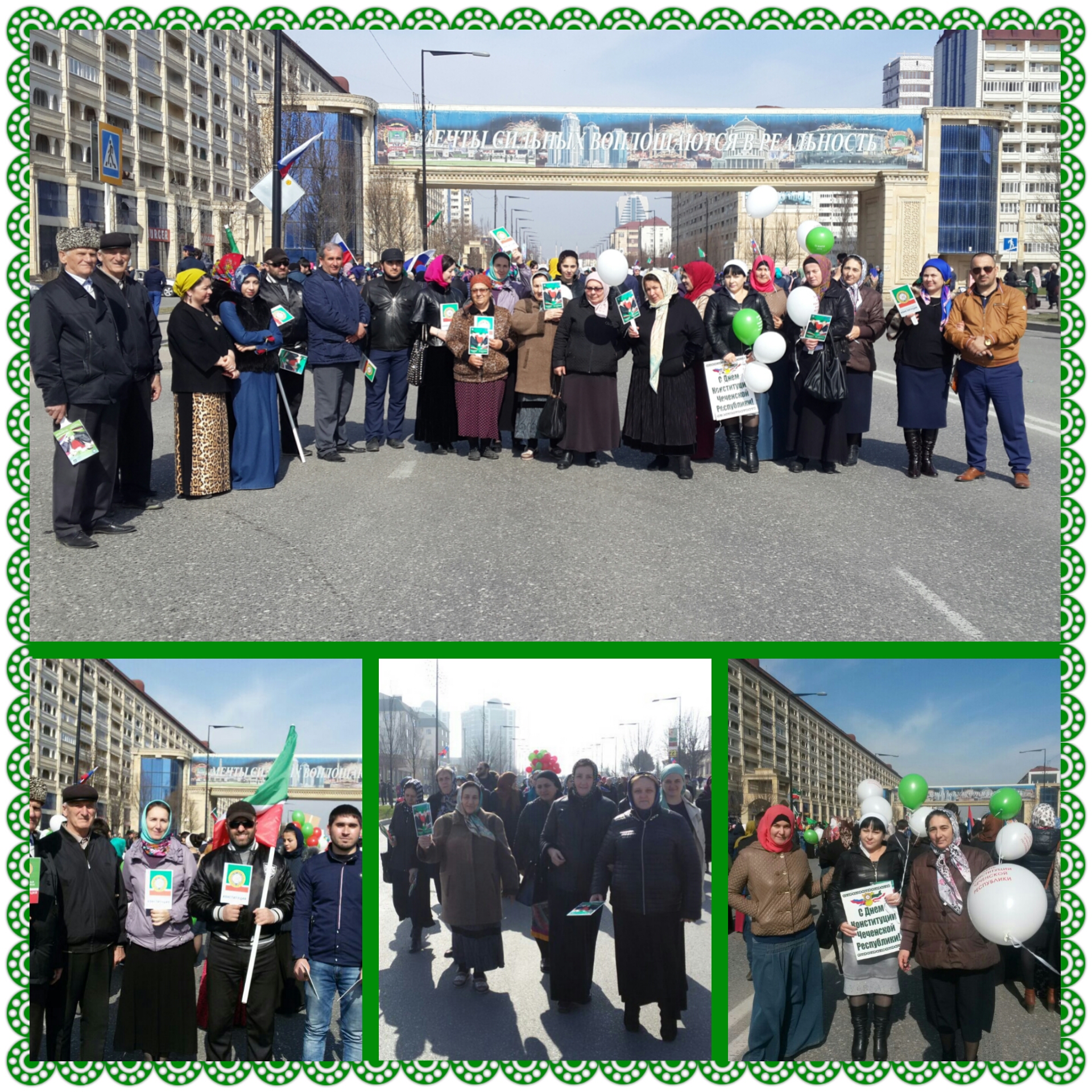 Сегодня 23 марта 2016 года наш коллектив во главе с директором школы принял участие в широкомасштабном мероприятии, посвященном знаменательной дате - Дню Конституции Чеченской Республики.