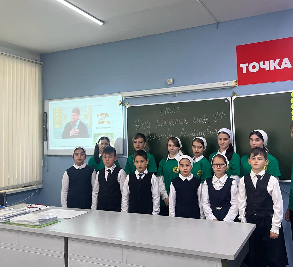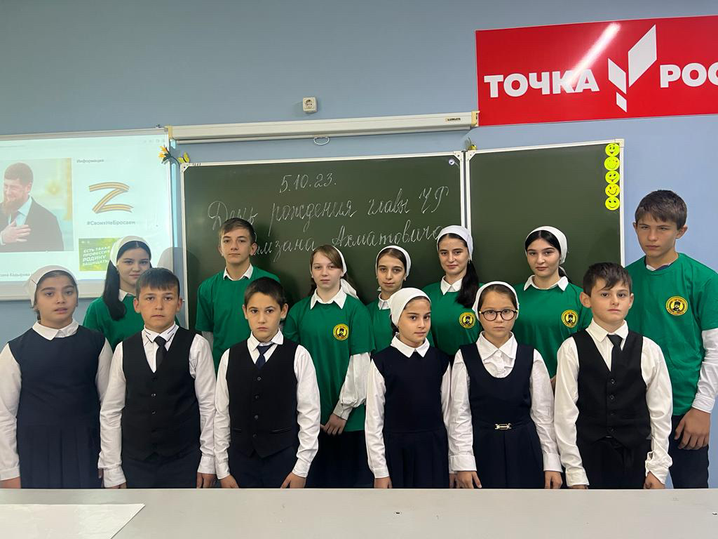 В МБОУ «СОШ 2 с. Мартан-Чу». Активисты ЕДЮО " Юные Кадыровцы" провели мероприятие, приуроченное ко Дню рождения Главы Республики Рамзана А. К. Цель: расширить кругозор обучающихся, духовно - нравственное воспитание подрастающего поколения на реальных примерах героев Чеченской Республики. 05.10.2023.