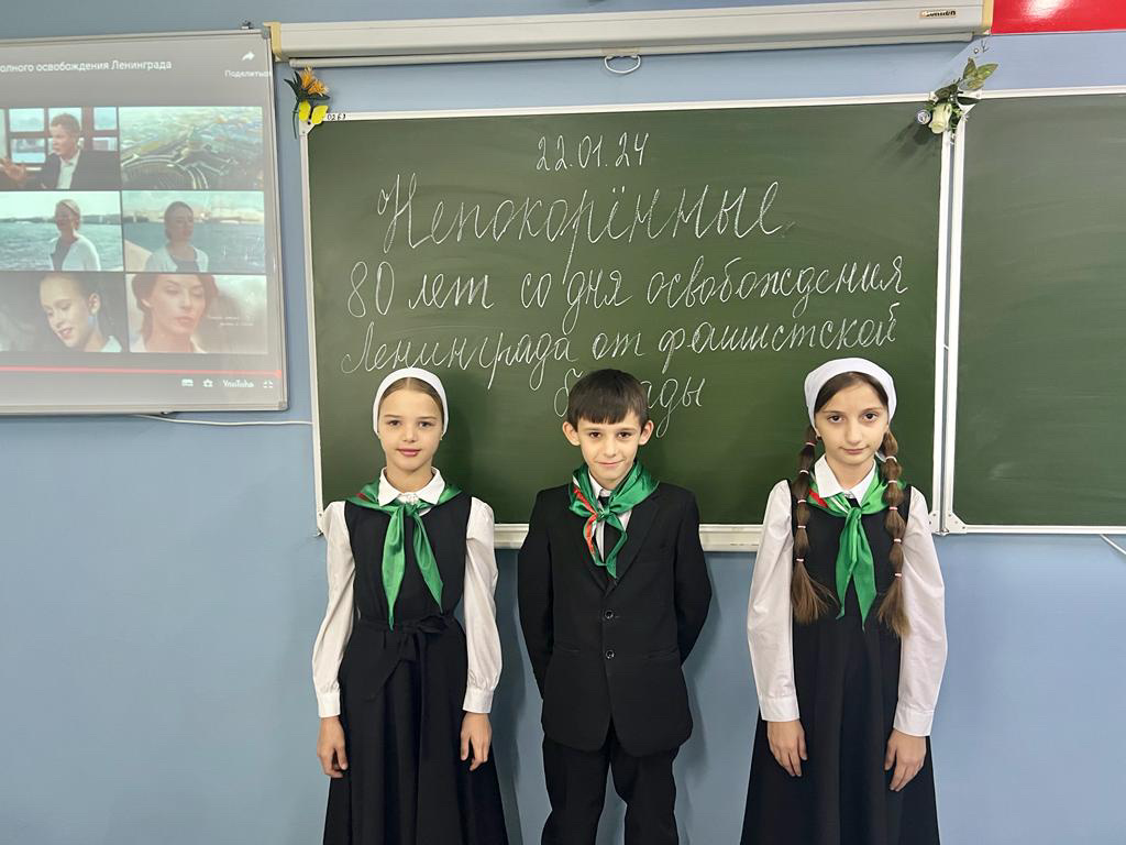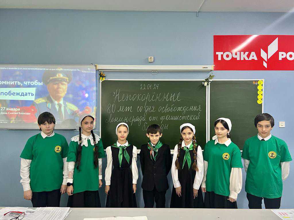 В МБОУ «СОШ 2 с. Мартан-Чу». Директор З.А. Дадаева. Активисты ЕДЮО " Юные Кадыровцы" провели мероприятие, приуроченное памятной дате Непокоренные. 80 лет со дня полного освобождения Ленинграда от фашистской блокады. Цель: расширить кругозор обучающихся, вызвать у обучающихся чувство сопереживания с трагической судьбой ленинградцев, восхищение и гордость за народ, проявивший стойкость и мужество в схватке с врагом, развивать познавательную активность в области знаний об истории своей страны. 22.01.2024.