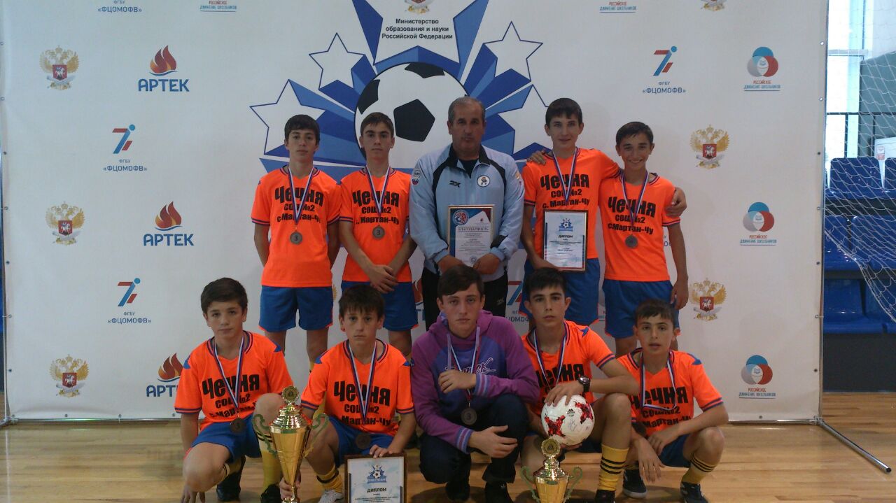 Команда МБОУ "СОШ№2 с.Мартан-Чу" Чеченская Республика заняла 3 место на всероссийском этапе всероссийских спортивных соревнований по мини-футболу