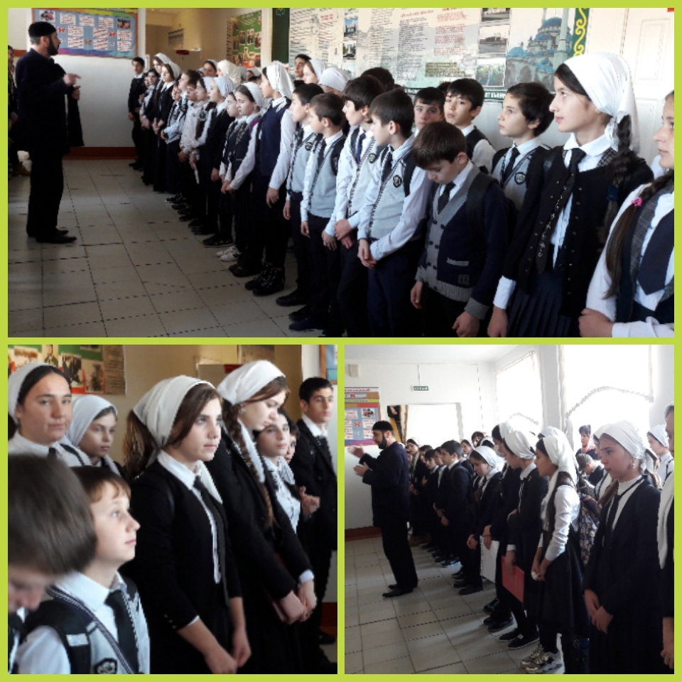 07.12.2017Беседа с обучающимися школы по теме: Проповедь о жизни Мухаммада (С.А.В.). Беседа проведена с целью духовно-нравственного воспитания обучающихся, направленное в первую очередь на повышение культуры поведения,воспитания в духе вайнахов.
