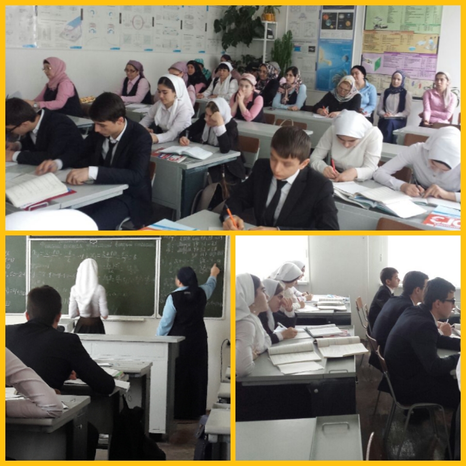 Открытый урок математики в 9 "Б" классе . Учитель математики Ахмутханова Х.Ж. . На открытом уроке присутствовали: Коллектив школы, Горчханова Е.С.