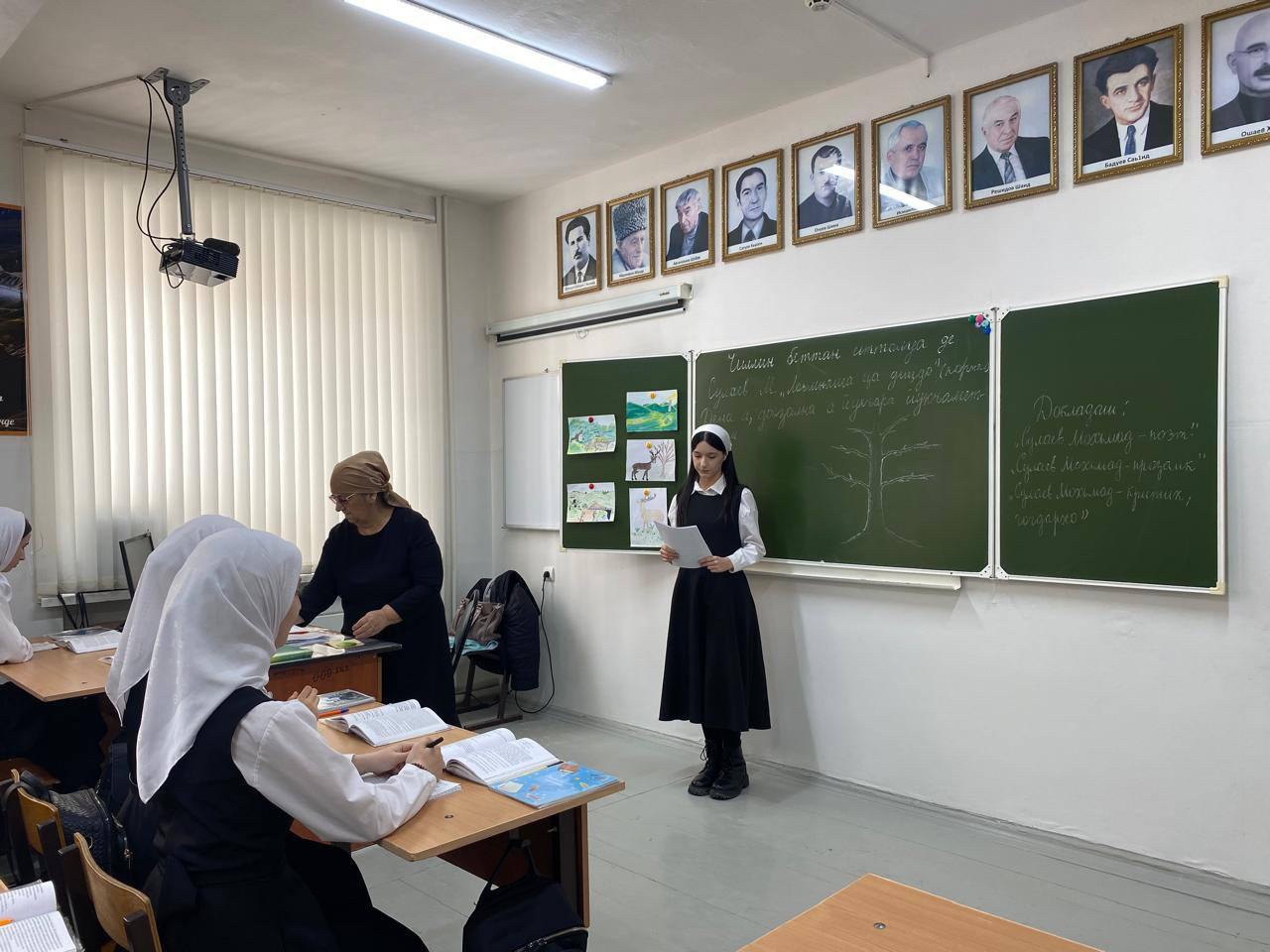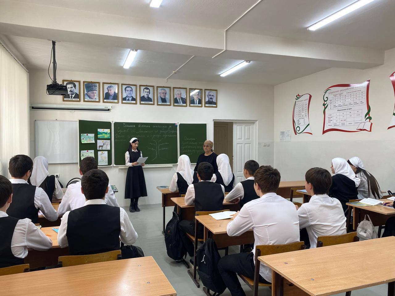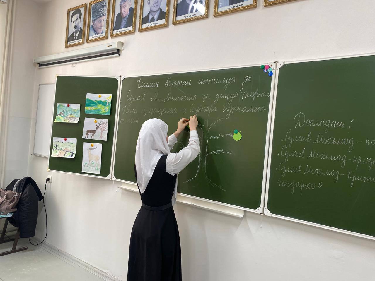 10 февраля прошёл открытый урок по чеченской литературе на тему: Сулаев М. «Лаьмнаша ца дицдо». Дена а, доьзална а йукъара йукъаметтигаш.