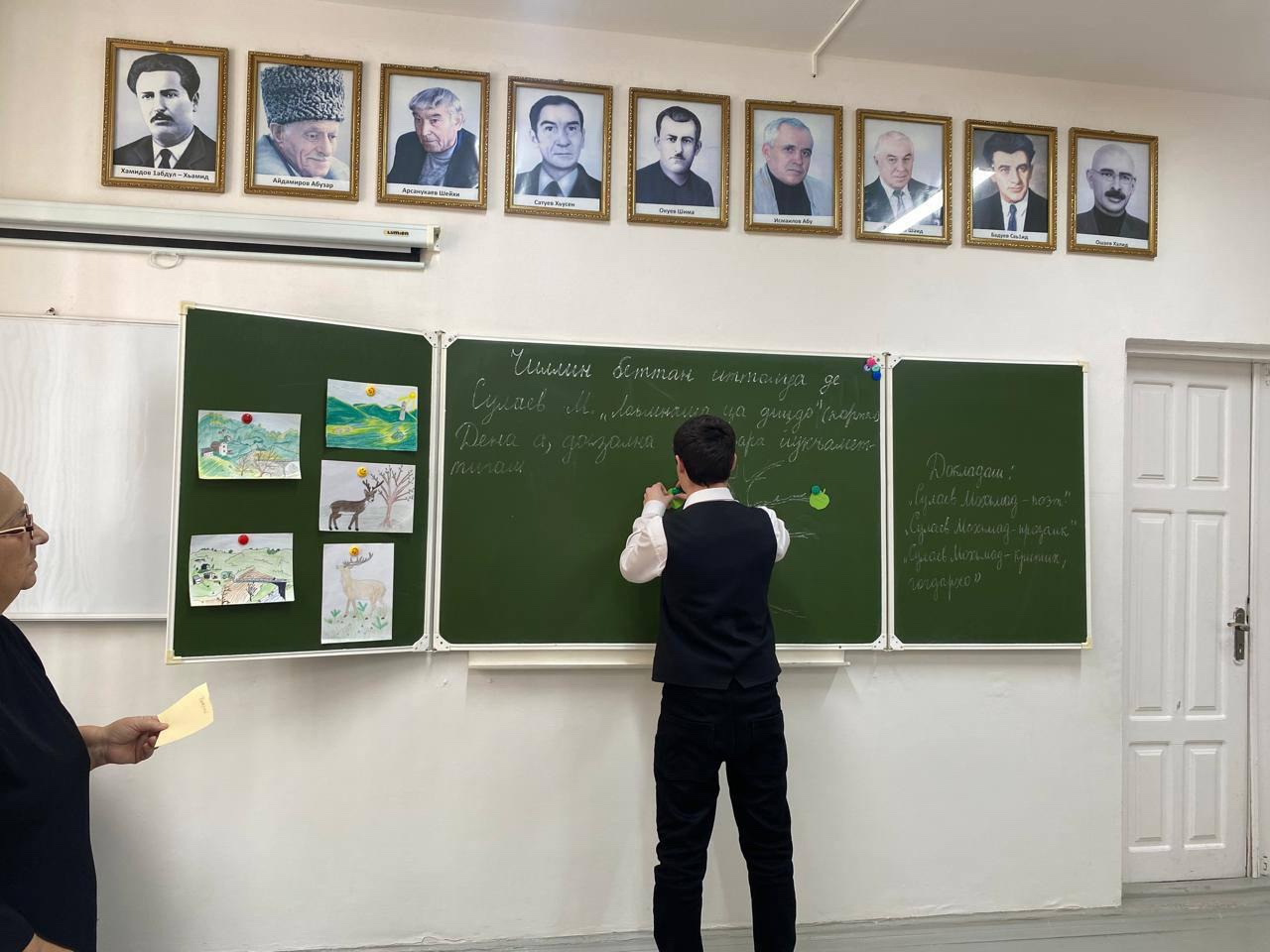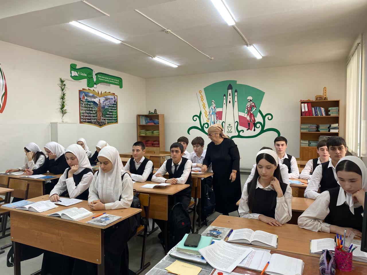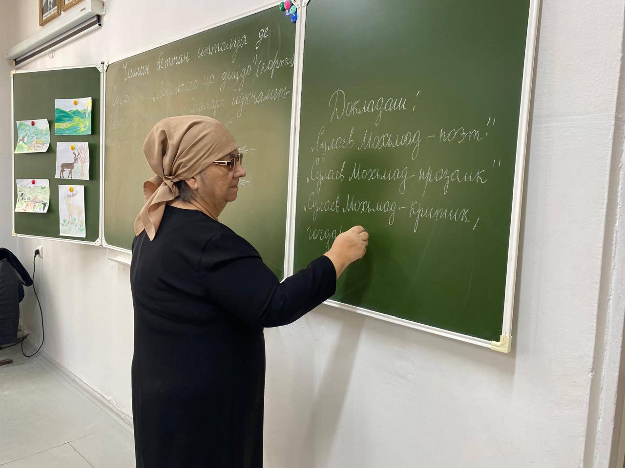 10 февраля прошёл открытый урок по чеченской литературе на тему: Сулаев М. «Лаьмнаша ца дицдо». Дена а, доьзална а йукъара йукъаметтигаш.